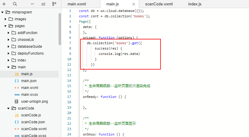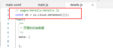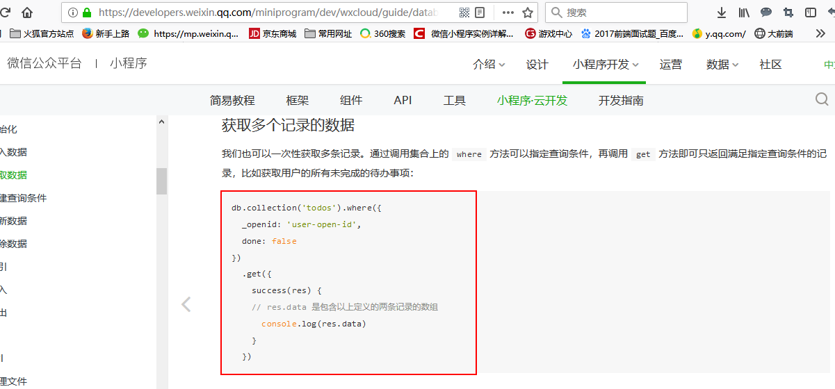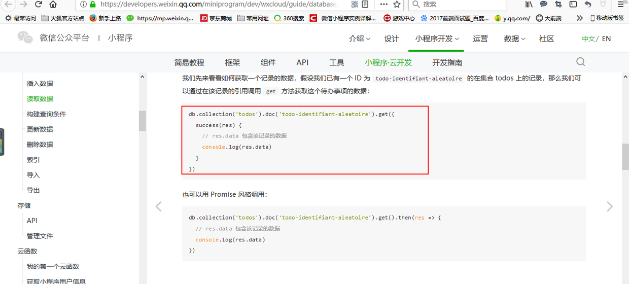 2:打开云函数文档里面的读取数据apihttps://developers.weixin.qq.com/miniprogram/dev/wxcloud/guide/database/read.html 复制此段读取数据记录的代码,放在onload里面