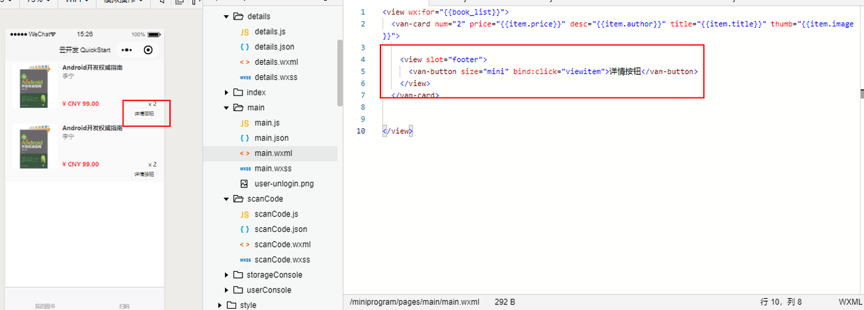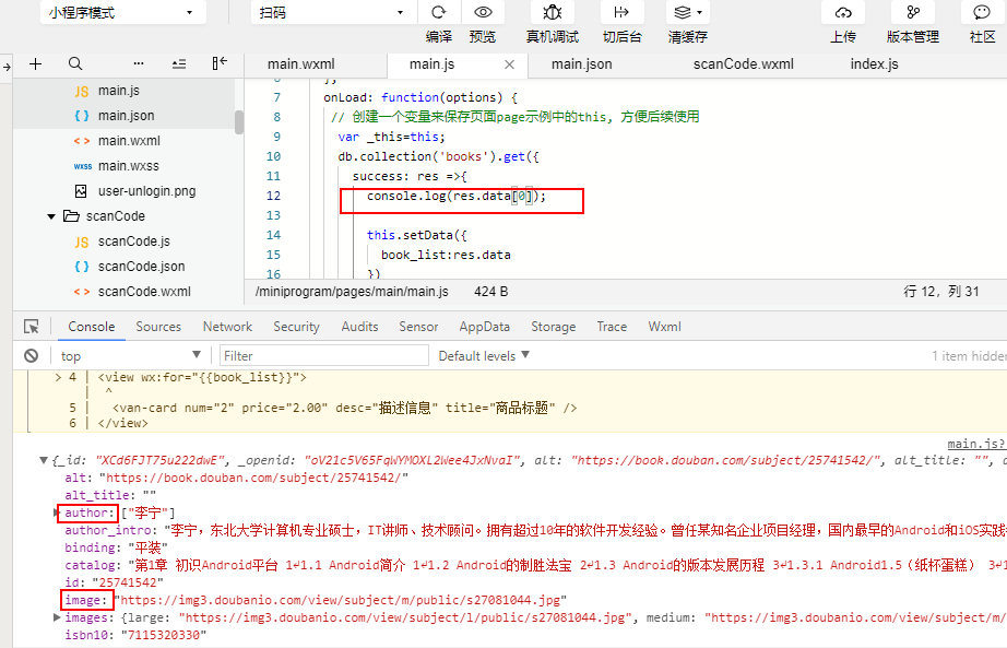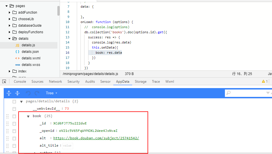 2:调用云函数获取到图书的信息,并将图书信息传递到小程序