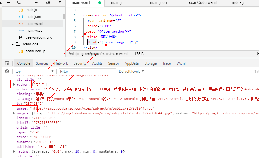 <van-card num="2" price="{{item.price}}" desc="{{item.author}}" title="{{item.title}}" thumb="{{item.image }}">