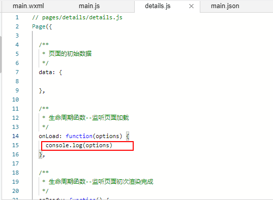 7:在detail.js的onLoad方法里面打印接收到的参数