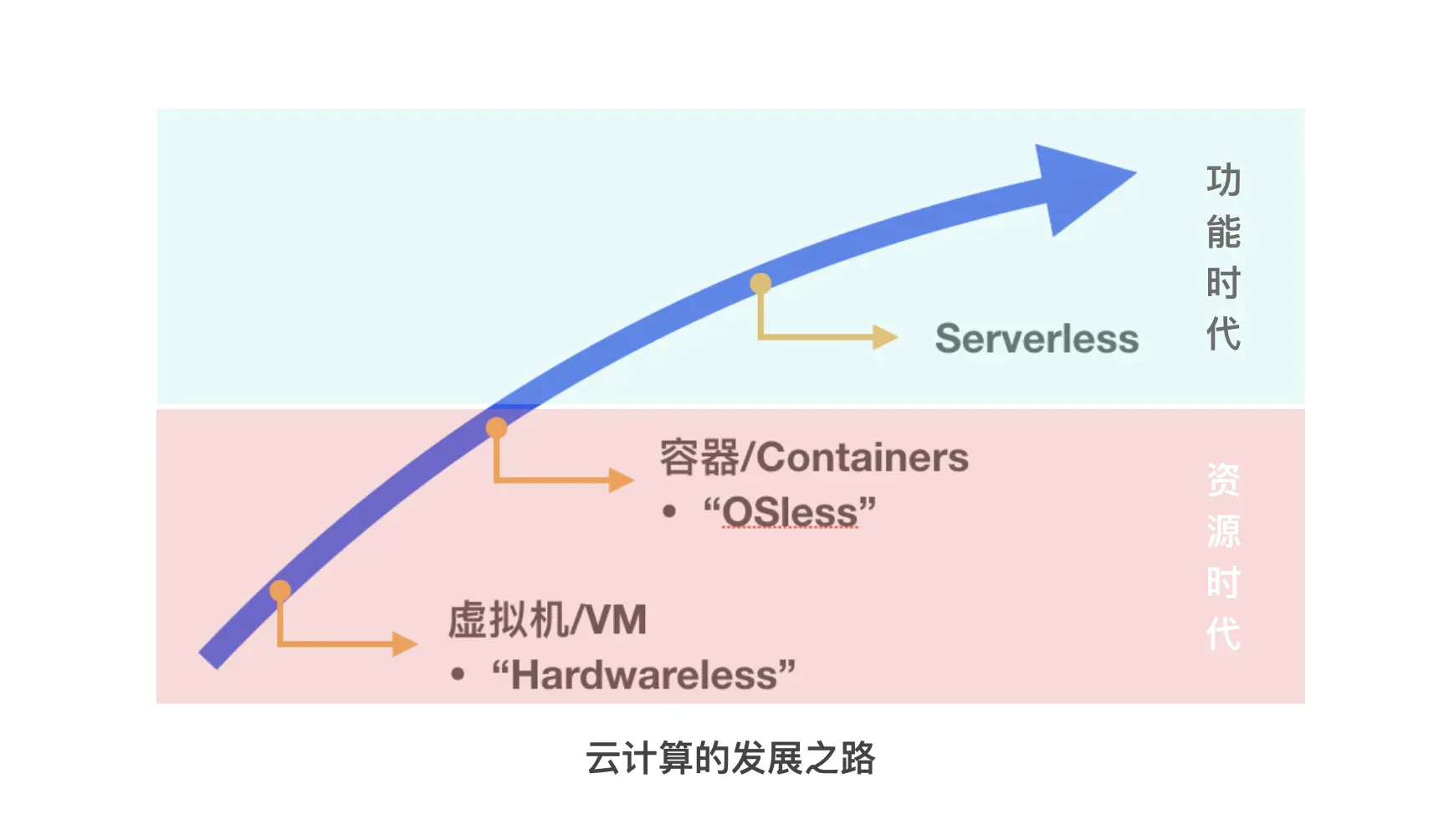 资源时代有两个阶段:虚拟机阶段和容器阶段。虚拟机阶段已经走过,用户不再需要对物理设备进行管理和维护。目前我们正在经历容器阶段:将 OS 虚拟化,此时,服务器资源已经迅速的平价化,云平台的竞争已经逐步从单纯的硬件价格竞争滑向功能层面的竞争。但是容器仍有一定门槛,需要专门的运维人员来管理,这样的服务方式依旧只适用于大型企业或者新兴科技公司。帮助相对传统的企业上云的问题依然没有解决。