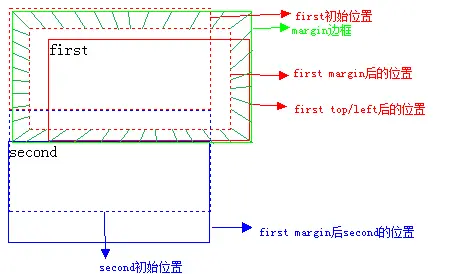 对比一下,是不是就很清晰了,我们先将first元素外边距设为20px,那么second元素就得向下偏移40px,所以margin是占据文档空间!同理,大家可以自己动手测下padding的效果吧!
