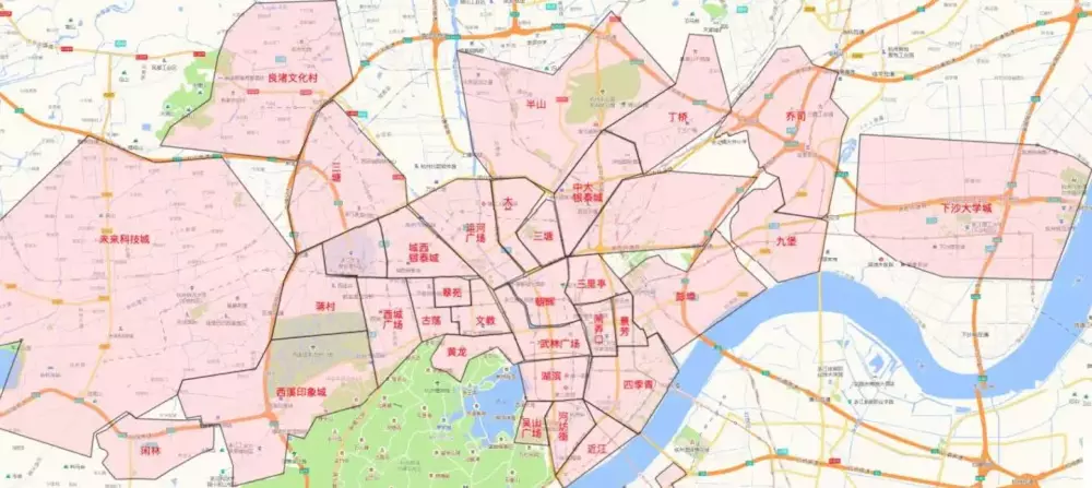 闲鱼app根据交通条件、商场分布情况、住宅区分布情况综合考虑,将城市划分为一个个商圈。杭州部分区域商圈划分如下图所示。