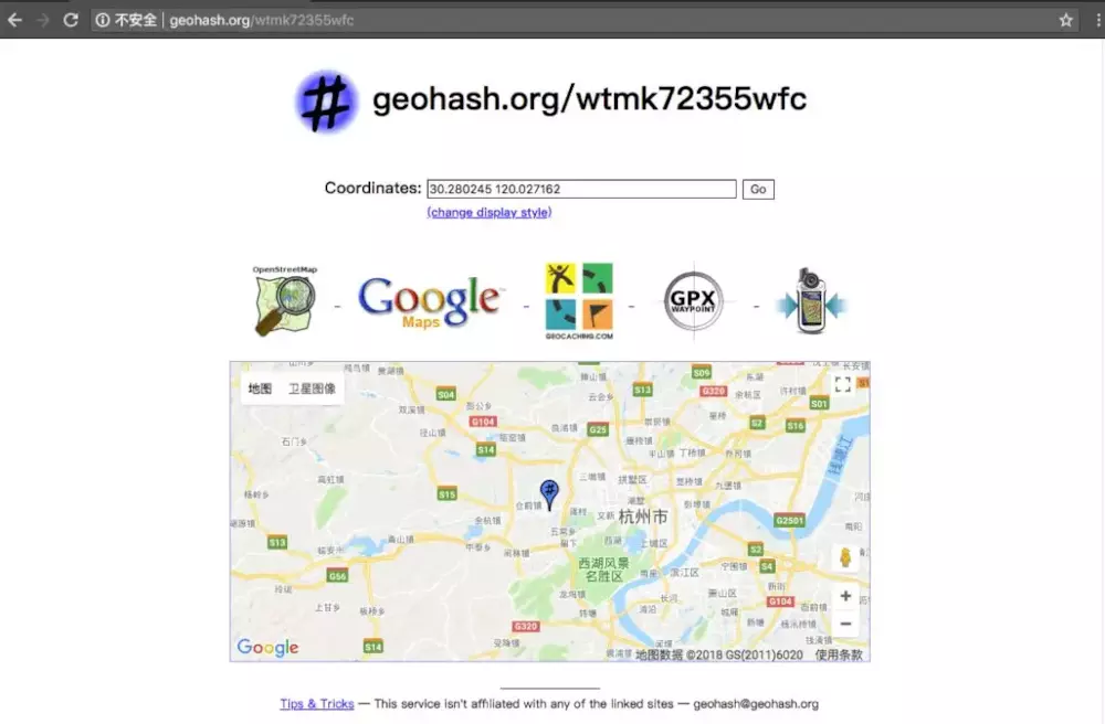 可以在geohash.org/网站对上述结果进行验证,验证结果如下: