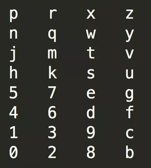 'w'的二进制11100,转换成方位含义就是“右 上 右 下 左”。't'的二进制11001,转换成方位含义就是“上 右 下 左 上”。