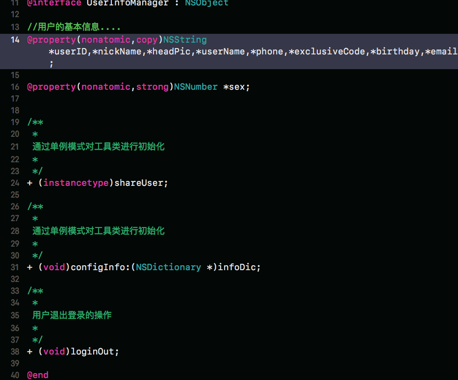 1.UserInfo工具类的属性就是用户的各项信息,包括最常用的几个属性,如:userID和昵称以及头像等,具体还要根据自己的项目的业务需要来确定。