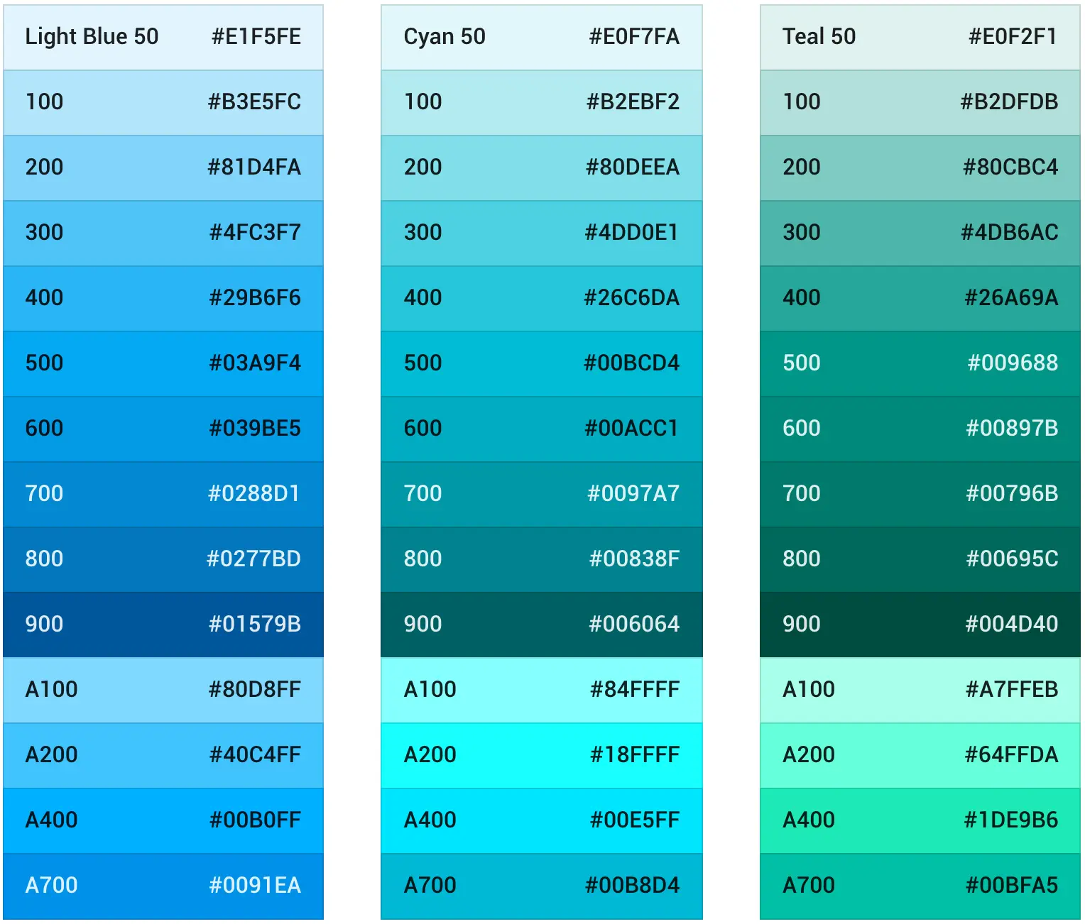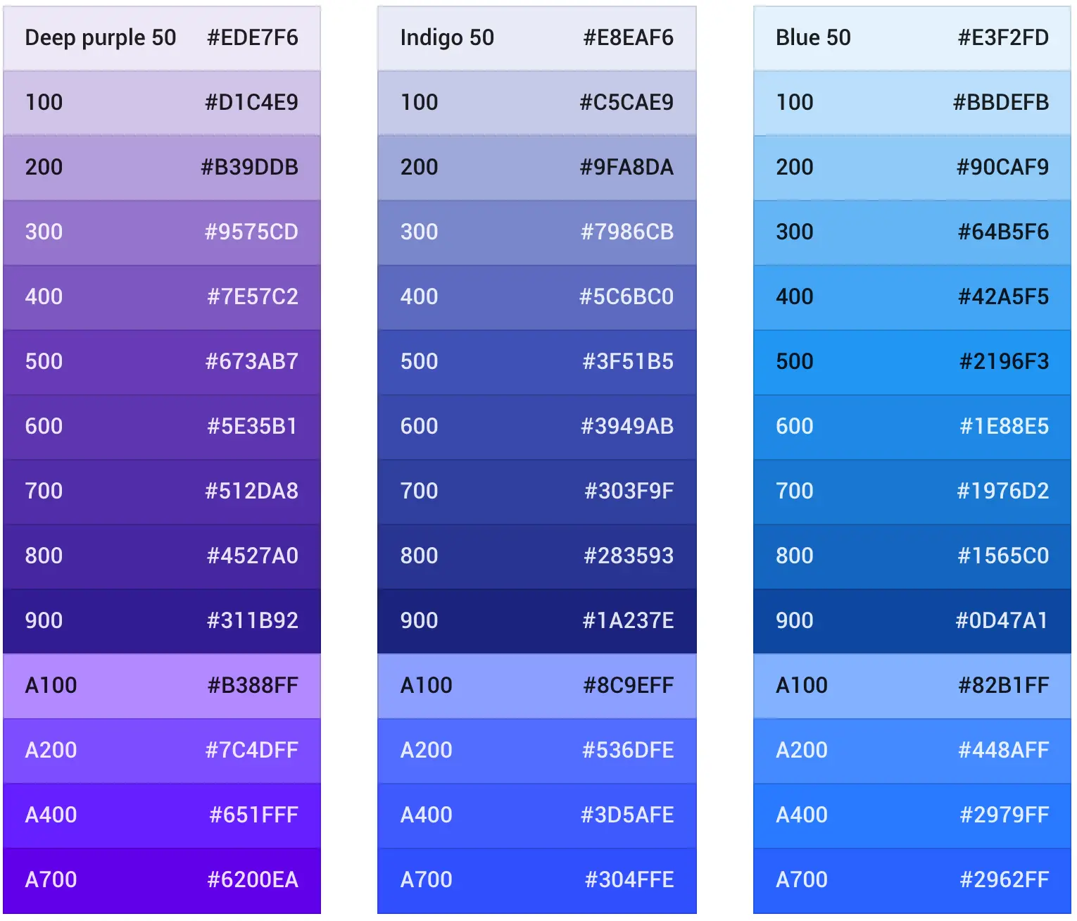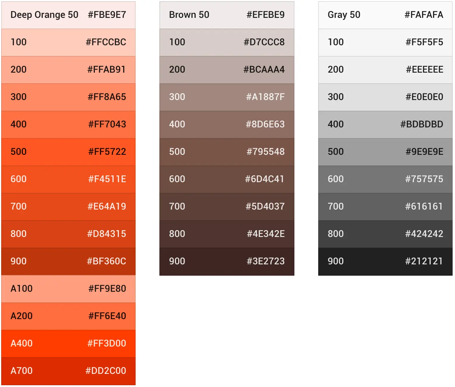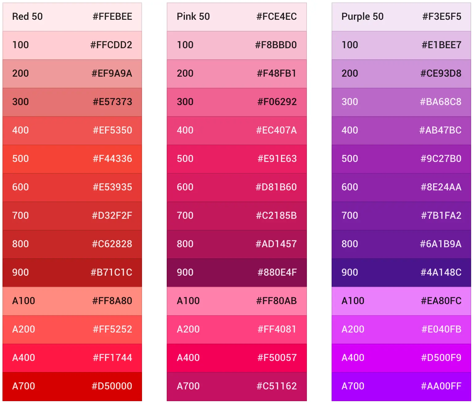 这些调色板最初由Material Design于2014年创建,包含可以协调配搭的一系列颜色,可用来搭建品牌调色板。要生成自己的和谐调色板,请使用调色板生成工具或Material主题编辑器。
