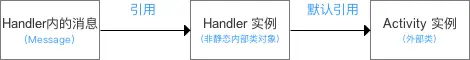 Handler= 非静态内部类 / 匿名内部类(2种使用方式),故又默认持有外部类的引用(即MainActivity实例),引用关系如下图