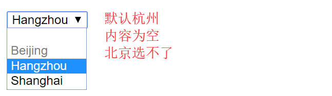 <option value="Beijing" disabled>Beijing</option> //disabled不可选择