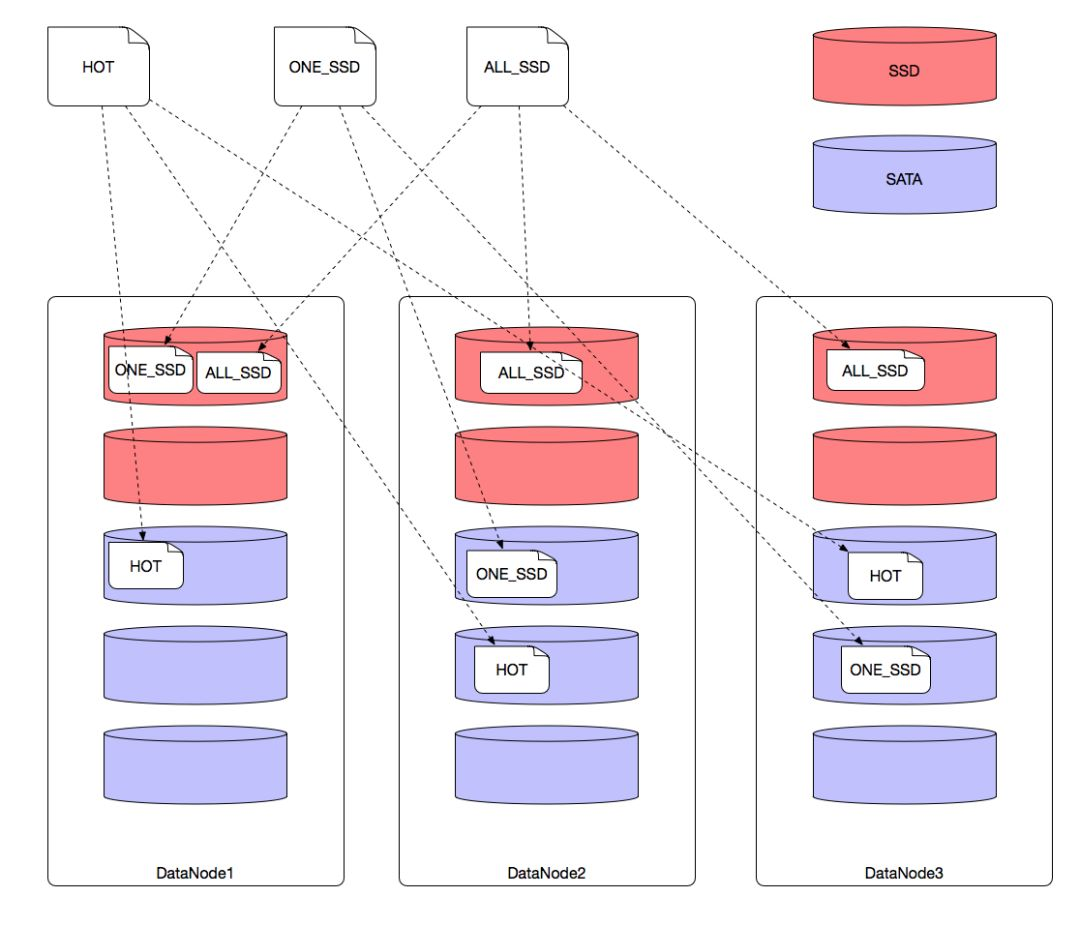 添加 SSD 磁盘之后,HDFS 集群存储架构示意图如图 5 所示: