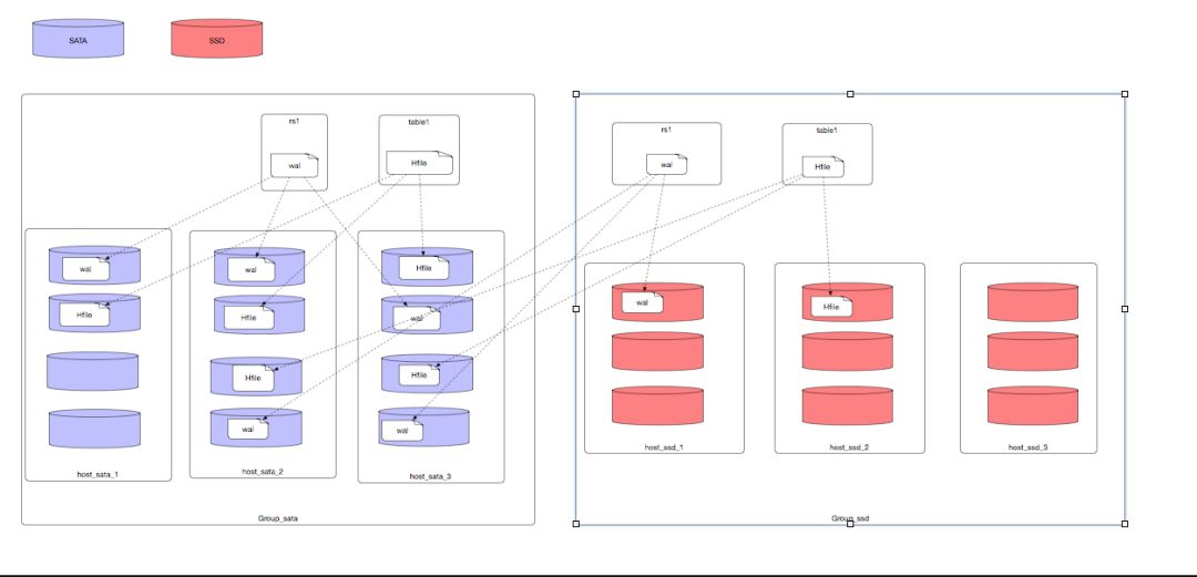 将SSD机器规划成独立的组,分组的 RegionServer 配置 hbase.wal.storage.policy=ONE_SSD, 保证 wal 本身的本地化率;