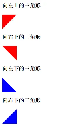 其实不难发现,向左上的三角形刚好是向下的三角形的右半部分,所以要得到这个图形,是不是只要把向下的三角形左半部分的边框设为0就可以了,看代码: