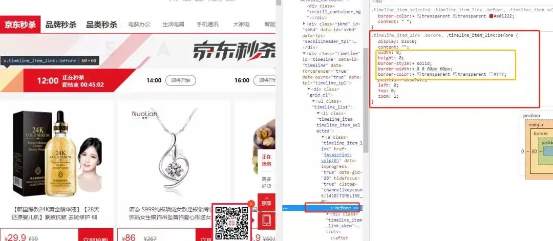 是不是剩下4个不同颜色不同方向的三角形了,继续往下看,一起来见证下border的黑魔法。