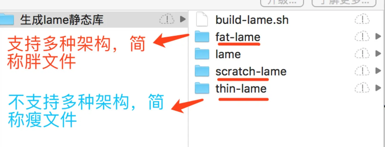 fat-lame文件,把 fat-lame 里面的lame.h与libmp3lame.a拖走即可