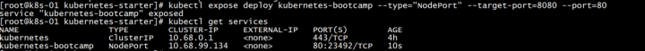 kubectl expose deploy kubernetes-bootcamp --type="NodePort" --target-port=8080 --port=80