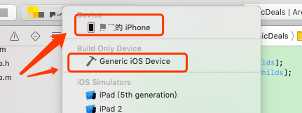 1.选择真机或者机型那里选择 Generic iOS Device。