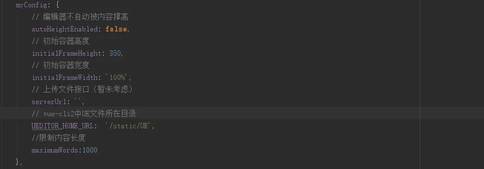 重点主要在myconfig配置参数上(详细配置参数见UE/ueditor.config.js),在vue-cli2与vue-cli3上略显不同。