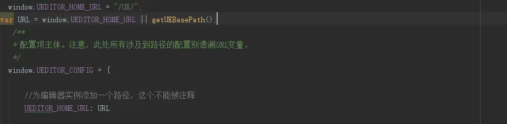 ueditor.config.js中的UEDITOR_HOME_URL为'/UE/'