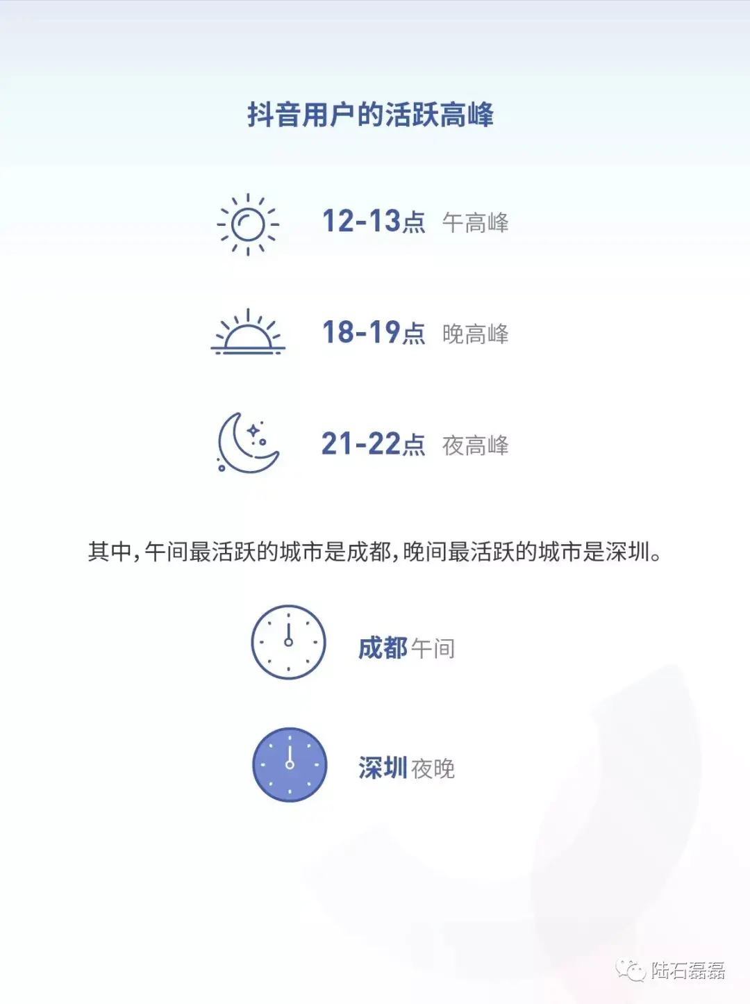 1.从数据来看,抖音的用户活跃在12-13点,18-19点都是吃午饭,晚饭期间,21-22点是休息时间,躺在床上刷着抖音,消遣。成都的不午睡,深圳的夜猫子居多。