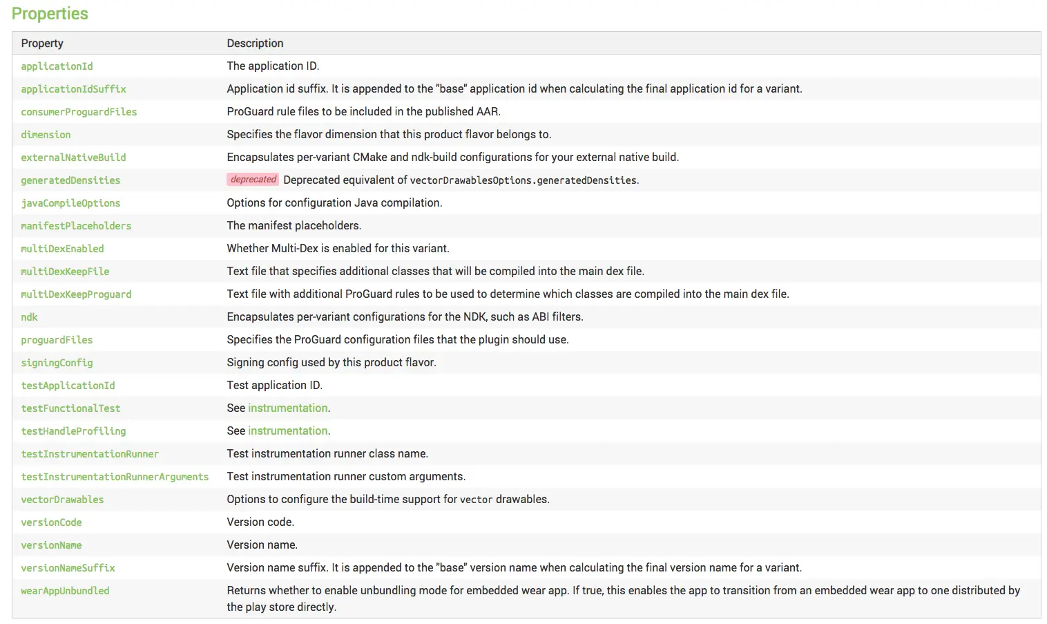 首先可以在Android Gradle DSL文档上对应查询DefaultConfig使用说明。