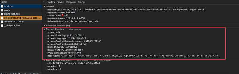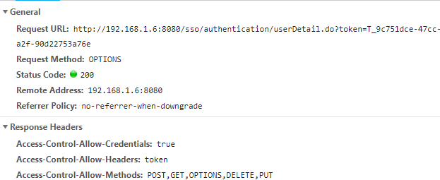 预请求:OPTIONS 在请求header中是没有自定义的token的。