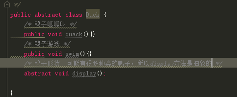 /* 鸭子形状 可能有很多种类的鸭子,所以display方法是抽象的 */