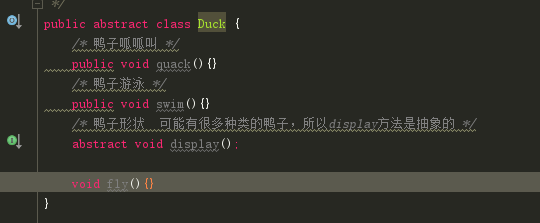 回到我们的问题,把鸭子的行为fly 和quack从duck类中取出。