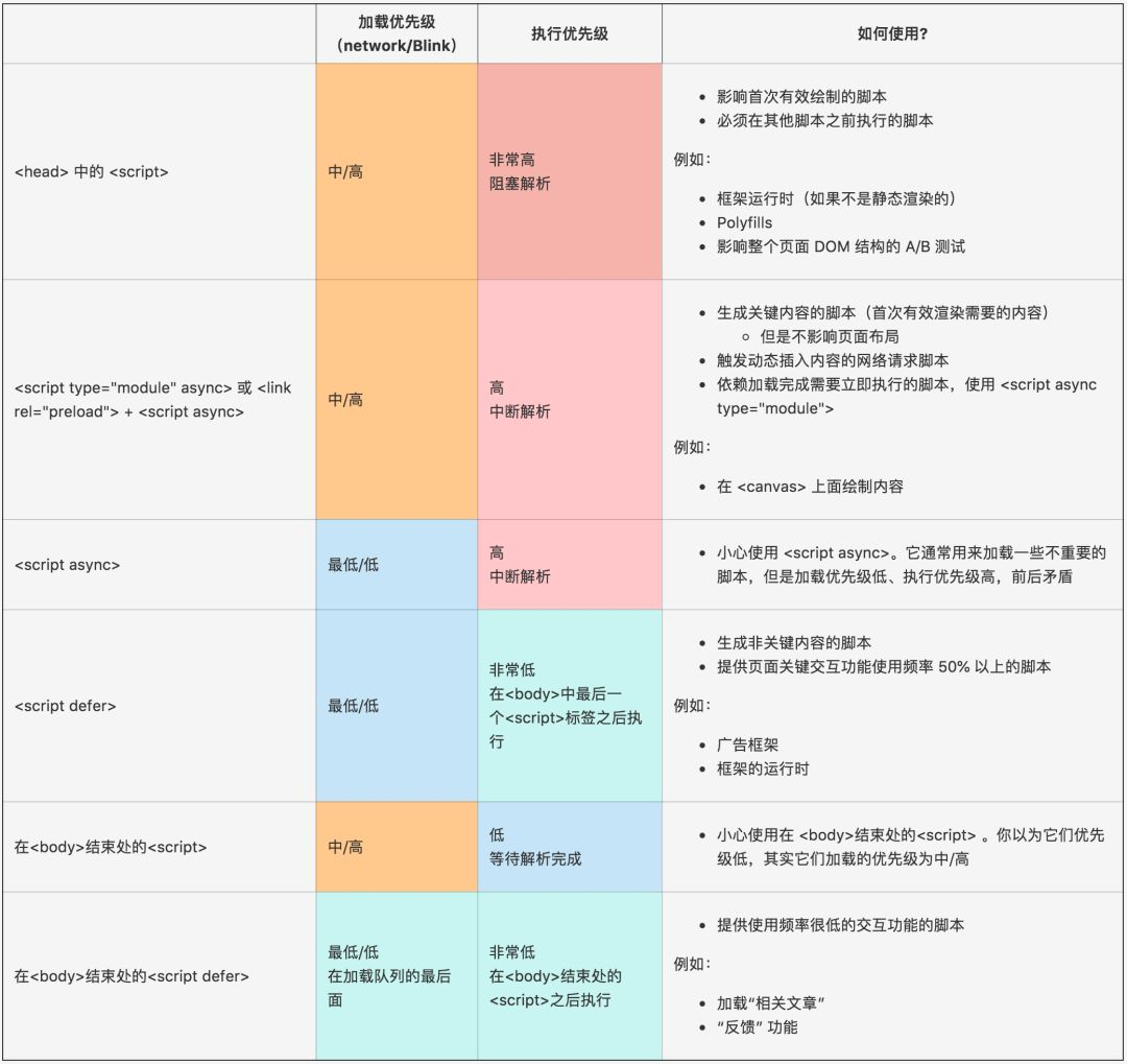 这个优先级概要表在2019年2月份都是正确的。我个人对于其他浏览器 JavaScript 加载优先级的理解同样很感兴趣。希望这篇总览能够对你有所帮助。