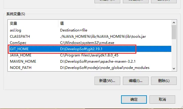配置环境变量,在系统变量处增加GIT_HOME 和 path路径
