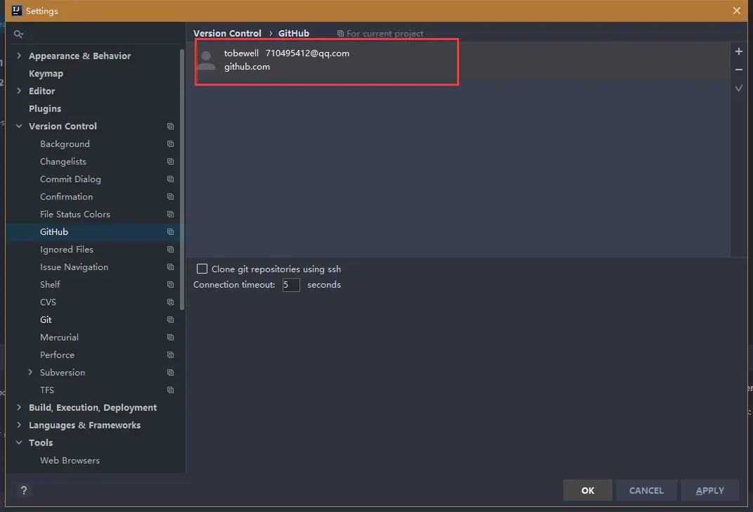 增加你的GitHub账号到IDEA