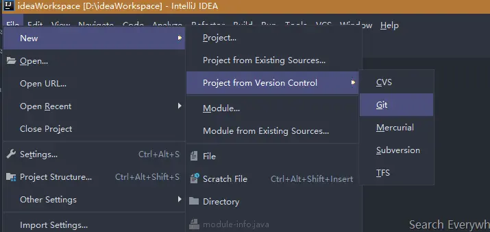 从GitHub上面Clone项目到本地里 File->New->Project from Version Control->Git