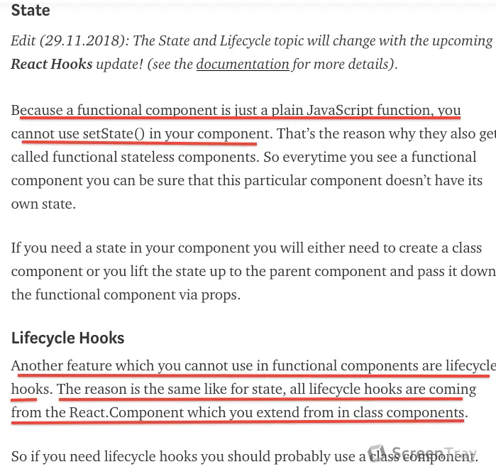 As we know in react, only class compnt can get access to lifecycle method such as componentDidMount...