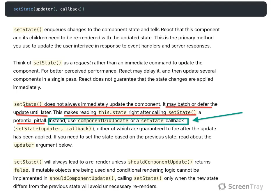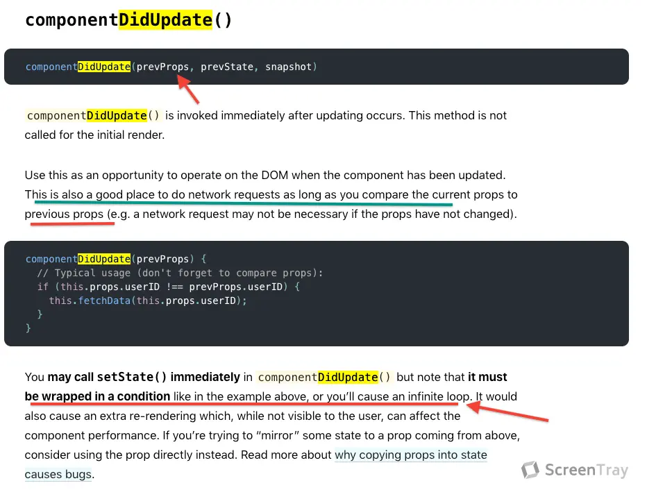 componentDidUpdate(prevProps, prevState) {