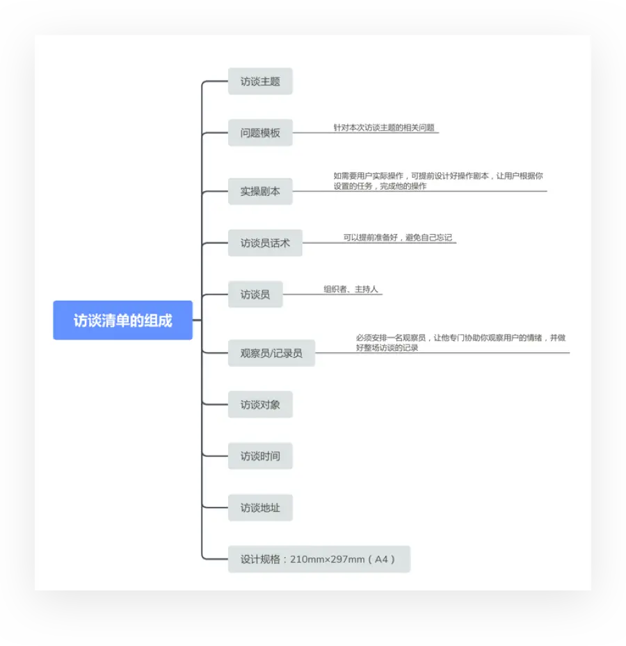 其实,真正执行过访谈的人都知道,访谈提纲一开始很难做到100%全面覆盖,需要在实践中逐步完善,通过与用户交流,把新发现的点子补充进去,很快你的访谈提纲就能得到完善。