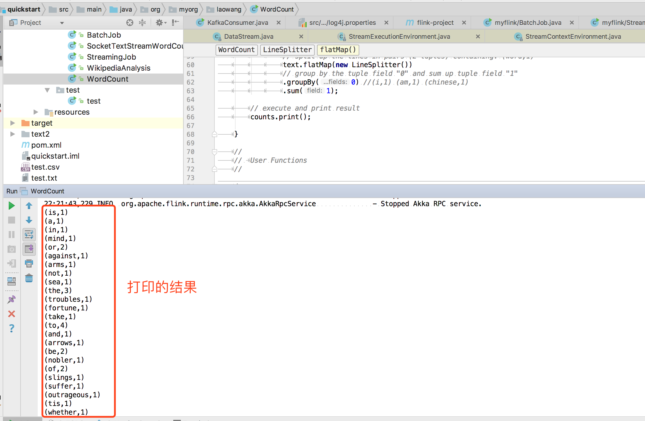 类似的例子,官方也有提供的,可以在这里下载: WordCount官方推荐