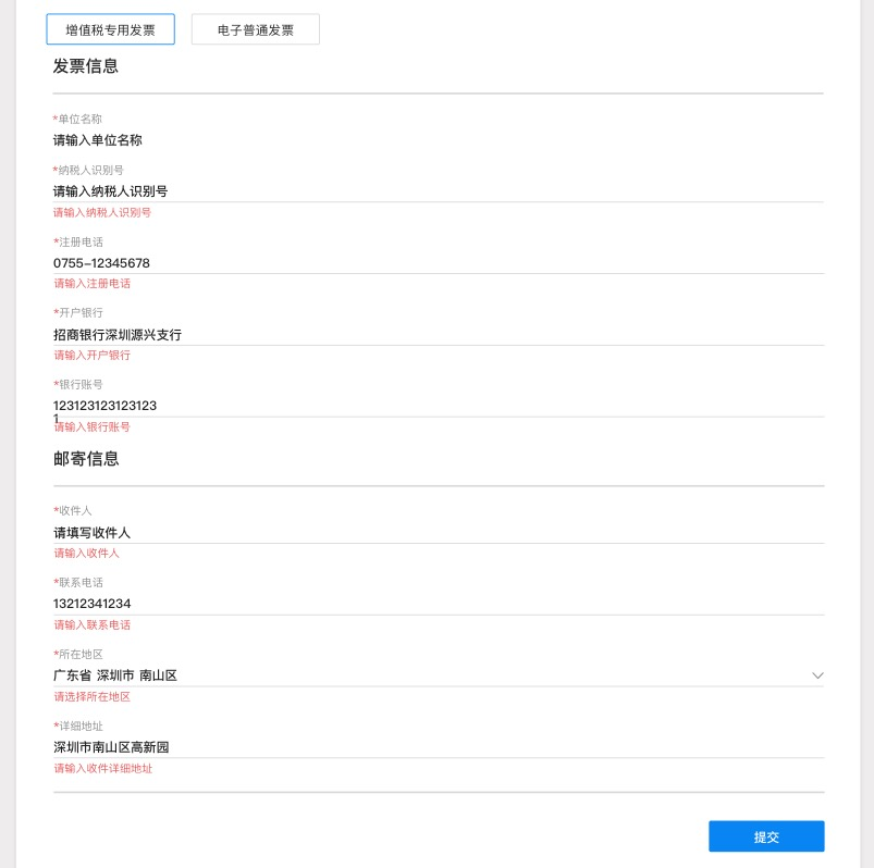 - 邮寄信息表单只在选中增值税专用发票时才需要