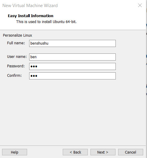 5)在弹出的窗口中输入即将要安装的Linux的用户名和密码,如图1.3所示。