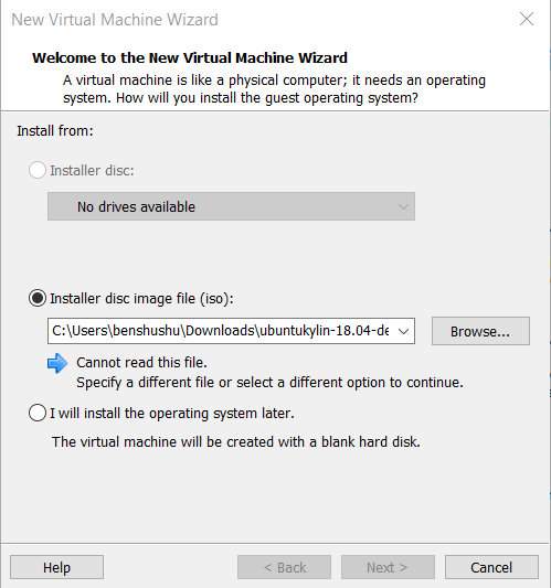 4)在New Virutal Machine Wizard界面中,选择“Installer disc image file(iso)”单选按钮,单击Browse按钮,选择刚才下载的安装程序,如图1.2所示。然后,单击“Next” 按钮。