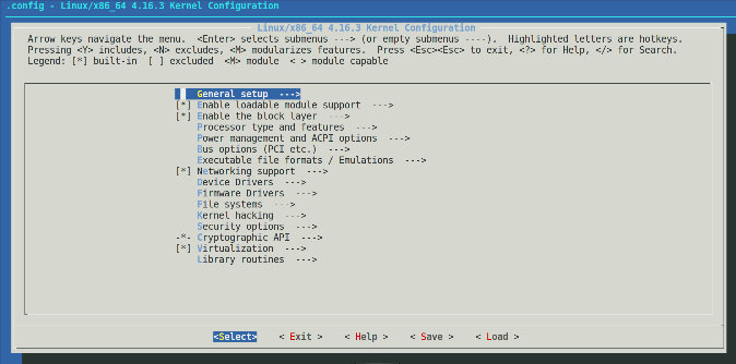 解压完成之后,可以通过make menuconfig来进行内核配置,如图1.10所示。