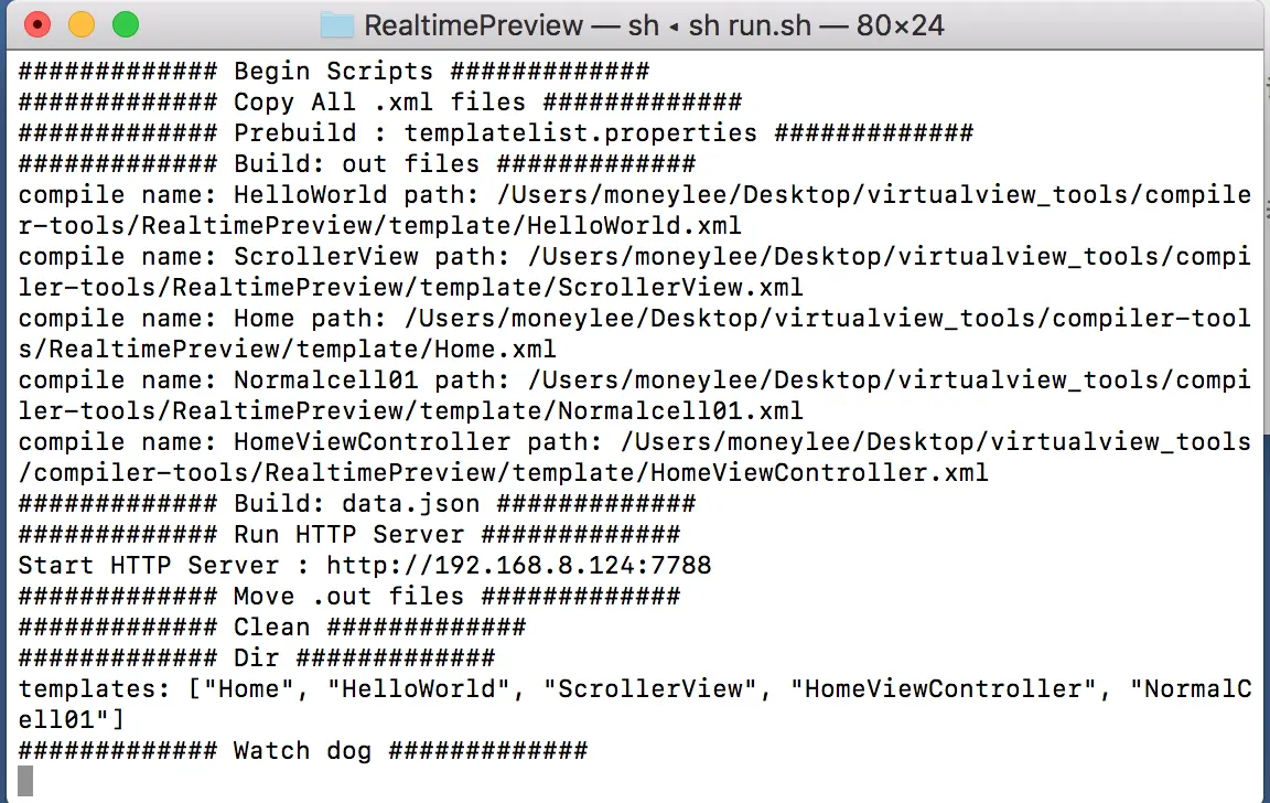 xcode启动RealtimePreview项目, 然后 执行run.sh脚本启动服务 atom打开virtualview_tools项目: