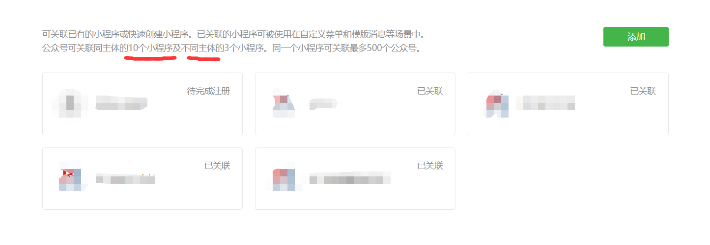 这个意思是一个注册公司最多关联10个相同公司的10个小程序或者3个不同公司的小程序,一开始是5个,现在变成10个,基本可以满足绝大部分小伙伴的需求了,