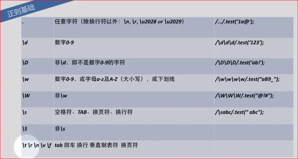 (1)var reg = /\d/; //先看reg匹配到的字符串只能是单个数字
