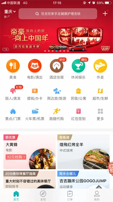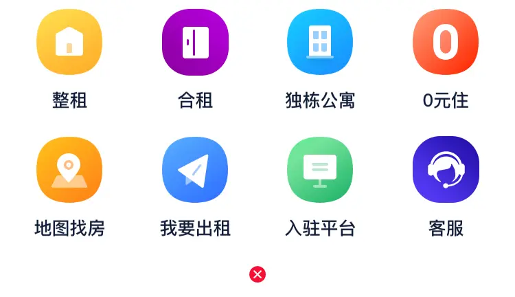 圆形或圆角矩形图标多用在APP首页的金刚区。作为整个产品流量分发的入口,选用此类风格图标是最合适不过的了,占用面积大,视觉表现力强,具有很好的导流作用。并且可以做出丰富的视觉效果,如投影、渐变、背景纹理、折纸剪影等设计手法。
