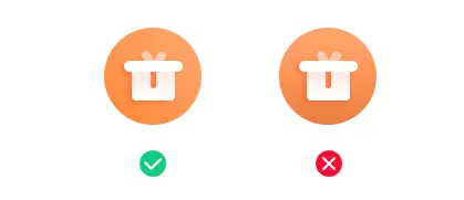 规整的面性图标,如圆形,圆角矩形,里面的挖空图形面积要统一,不能有大有小,或者视觉重心不一致。例如图(1-7)