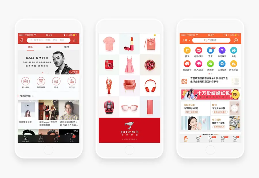 app设计中的板式设计还有很多深究的地方,如视觉层次、阅读节奏感等。由于篇幅有限就不再一一叙述。上面讲到的是比较基础,但又非常实用的要点,在工作中完全够用。下面进入app设计的第三个要素: