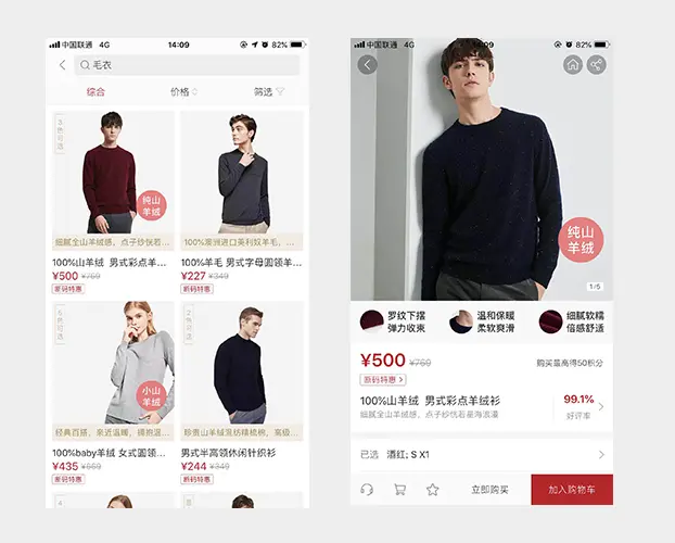 1:1的图片比例是app中常见的一种图片比例,规整简单,易排布,能够突出主体。常用于产品展示,电商类app用得较多。如图网易严选(4-1)