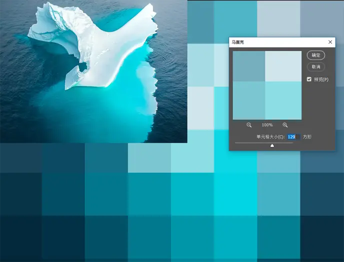 采集方式:Photoshop打开图片 → 滤镜 → 像素化→ 马赛克 → 设置单元格大小。如图(3-7)