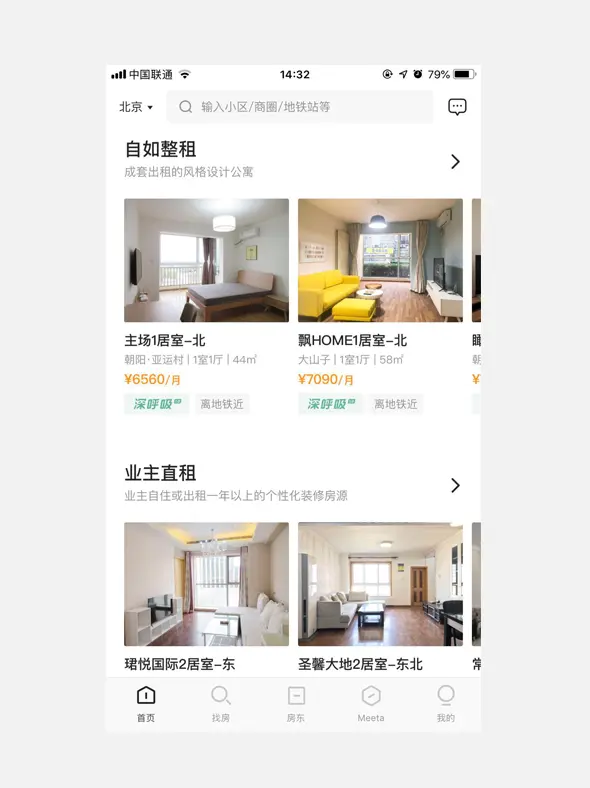 4:3的图片比例可以使图像更紧凑,更易构图。多用于左右排版的文章列表,和旅游租房民宿类的产品图。如图自如(4-2)
