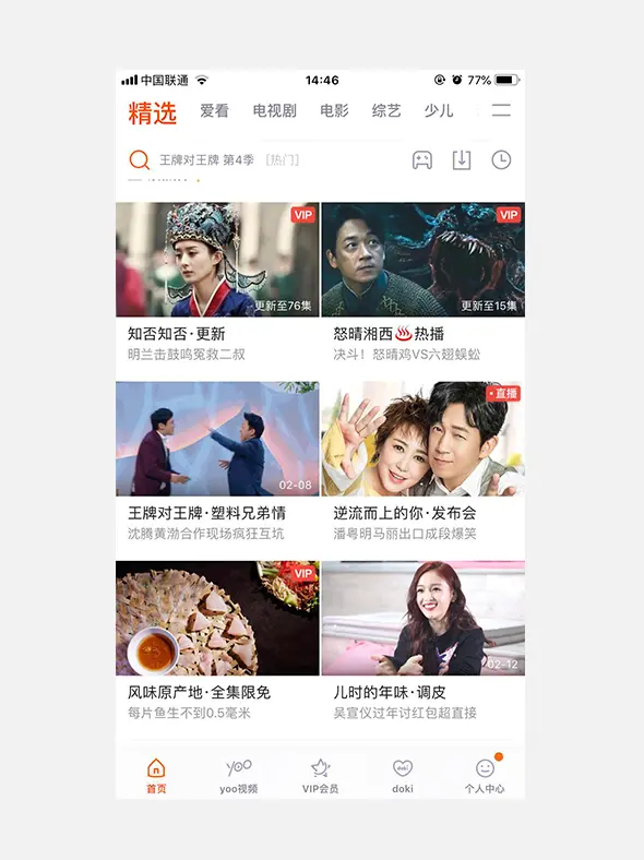 16:9的图片比例视野开阔,适合横向构图。也是app设计中常用的一种尺寸。在视频影音娱乐类的产品中经常使用。如图腾讯视频(4-3)