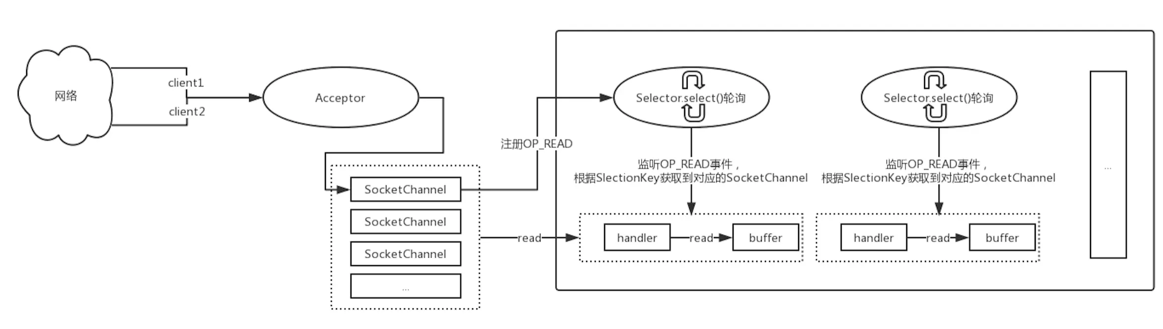 SelectionKey readKey = client.register(selector, SelectionKey.OP_READ);